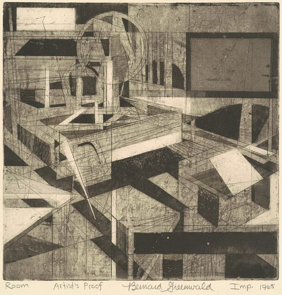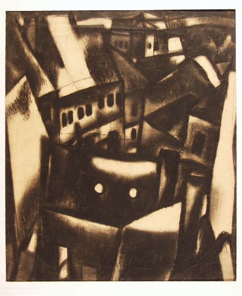 Armin Landeck created this aquatint and etching called 'Manhattan Canyon' in 1931. It offers a striking perspective on New York City's architecture. Landeck's print captures the imposing scale and stark geometry of skyscrapers, transforming the urban landscape into a dramatic, almost abstract composition. The title itself evokes the feeling of being hemmed in by towering structures, a sentiment that resonates with the experience of urban life in a rapidly modernizing America. Made during the interwar period, this print subtly critiques the social conditions of the time, questioning the relentless march of progress and its impact on the individual. To truly understand Landeck's vision, we can look at the prints and photographs that were exhibited in galleries and museums during this period. These reveal the anxieties about the alienating effects of modernity that were being expressed across American culture.
