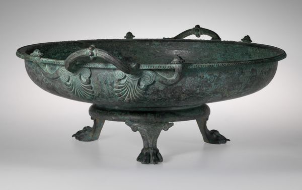 Curator: Looking at this, the first thing that comes to mind is an abstracted landscape, almost geological. Editor: This charming ceramic piece, a sauceboat, was likely crafted sometime between 1745 and 1775. The type is attributed to Whieldon, and it currently resides at the Metropolitan Museum of Art. Curator: It’s an excellent example of the Rococo style applied to decorative arts. The swirling colors, the delicate, almost frivolous shape...it speaks of a desire for beauty and novelty. The feet resemble paws; and is that a dragon or a dog forming the handle? Editor: Indeed. Bestial imagery was exceedingly popular, laden with layered meanings. A dragon is a potent symbol of power, guarding what is precious. Yet, here, rendered on a sauceboat, it's domesticated, playfully incorporated into daily life. One could say it reflects a desire to civilize even the most ferocious parts of nature and oneself. The very shape hints at abundance. The form seems ripe, generous, and brimming with possibility. Curator: And, beyond individual symbolism, we see how these objects shape social rituals. Serving and sharing sauce becomes an aesthetic act. It elevates dining, reinforcing social hierarchies of refined culture and wealth, but also creating a shared sensory experience among the diner’s circle. Editor: Exactly. These Rococo flourishes – the swirls, the beast-like handle – broadcast status, refinement, and cultural capital. This sauceboat becomes a stage, with the culinary act as a theatrical moment of symbolic significance. The ceramic material itself carries meaning, reflecting England's growing interest in ceramics, seeking to imitate porcelain, asserting national artistry within global trade routes. The object then reveals an entwining of local aspiration and worldwide ambition. Curator: Ultimately, viewing an object such as this provides more than an aesthetic understanding, it provides a lens to observe the construction of meaning and power. Editor: It offers us both an object of daily use and an object that hints at narratives far larger than its humble utilitarian nature might first suggest.