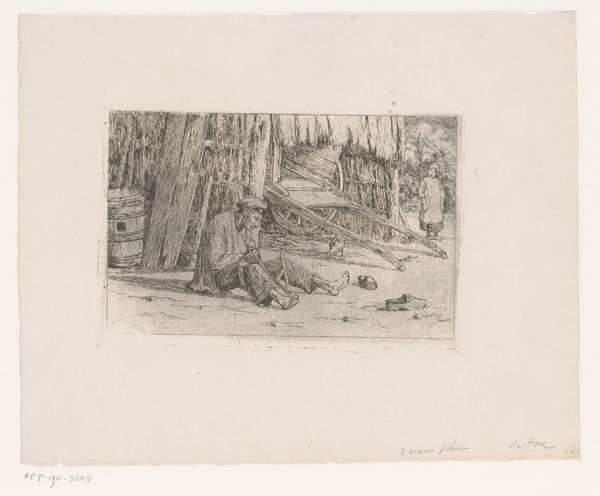 This is Camille Pissarro’s etching, ‘Spoorwegbrug te Pontoise’. The dark ink against the light paper creates a study in contrasts and textures, where industrial architecture meets tranquil waters. Pissarro uses the graphic medium to explore the semiotic relationship between the railway bridge and the river. The bridge, a symbol of modernity, spans across the scene, its rigid lines contrasting with the fluid reflections on the water. Notice how the artist plays with perspective. The scene challenges our understanding of depth and space. The bridge becomes a signifier of progress, juxtaposed against the traditional river barges, creating a dialogue between the old and the new. The etching technique, with its dense networks of lines, captures a sense of immediacy. This work can be seen as part of a broader artistic discourse that seeks to represent the changing landscapes of 19th-century France, inviting us to reflect on the relationship between industrialization and nature.