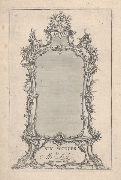 Curator: At first glance, it evokes this feeling of intense introspection, but also confinement, which I think is such a fascinating duality to encounter right off the bat. Editor: Exactly. We're looking at Carl Pier's "Design for a Confessional, Plate 1 from an Untitled Series of Designs for Confessionals," etched sometime between 1745 and 1755. Notice the dense, linear style typical of baroque decorative art, all swirling ornamentation and yet such rigid purpose. Curator: The meticulous detail is incredible. I’m thinking about the contrast between the intended spiritual experience, which should ideally be expansive and liberating, and the very physical structure of the confessional, which, as you mentioned, is so restrictive. I keep envisioning it not only as a place to atone for misdeeds, but a dark, cozy space away from the judgemental eyes of others. What symbolism resonates with you, seeing it? Editor: The overall shape for me points to the architectural symbolism of doorways as liminal spaces—thresholds between states of being. To me, it speaks to this journey from transgression to absolution. Curator: Right! It’s this idea of entering one way and leaving…transformed? I’m tickled by the theatricality, actually; the little staircase hints that the ritualistic performance is so ornate, almost baroque-and even with this being a penance it still gives performance. Editor: Absolutely, it is the theater of moral reckoning. Each line, flourish, and curve emphasizes confession's performance for a higher authority. Thinking of cultural memory, confessionals, especially historically, stood as a cultural mechanism to regulate conduct through moral judgement. It’s intriguing that we’re looking at design plans instead of a fully realized confessional. What are the cultural echoes resonating for you right now? Curator: I'm drawn to the designer's intention and how it lives as a reflection on power dynamics, I mean, you walk into this small space, both humble and exposed… Ultimately this artwork gives me insight into societal notions of both faith and authority, don’t you think? Editor: I wholeheartedly agree. Seeing this has allowed me to think deeply about cultural continuity embedded in visual form. Curator: I love that idea, it shows even now there can still be reflection even when things remain the same.