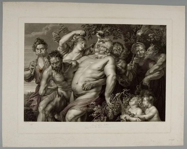 Editor: Here we have Maurice Blot's "The Judgement of Paris." It has an illustrative quality. How do you read this depiction of a classical myth? Curator: It presents an idealized male gaze, setting up a power dynamic between Paris and the goddesses, commodifying their bodies for judgement. What does it say about societal expectations and beauty standards then and now? Editor: So, it critiques how beauty is judged and who gets to judge it? Curator: Precisely. It invites us to question the inherent biases in such narratives. How does it make you feel to see this story visualized in this way? Editor: It makes me think about the objectification of women throughout art history. Curator: And how the persistence of these images normalizes those power structures. It is a reminder that art is never neutral.