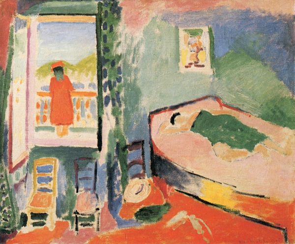 Kandinsky made this painting, Bedroom in Aintmillerstrasse, using oil on cardboard. The slightly wonky perspective and simplified forms give it a childlike feel, like a memory being pieced back together. I love the way Kandinsky uses colour here. It's not about representation; it's about feeling. See how the orange bed practically vibrates against the green wall? And that dab of pink for the pillow! There’s a real joy in the application of paint, it’s like he’s not trying to be neat or precise, just letting the colours do their thing. The tabletop still-life is so wonderfully rendered with thick daubs of blues and greens with expressive black lines. Later in his career, Kandinsky went fully abstract, but in this early work, you can see him already pushing the boundaries of what painting could be. It makes me think of Bonnard, who also captured intimate domestic scenes with a similar blend of observation and imaginative colour. It’s this ambiguity that makes the painting so compelling, it’s not just a bedroom, it’s a state of mind.