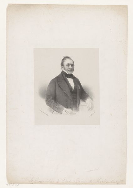 Antoine Maurin created this portrait of Auguste de Schonen using lithography, a printmaking technique that democratized image production in the 19th century. Lithography involves drawing on a stone or metal plate with a greasy crayon, then applying ink which adheres only to the drawn areas. This print was created using a stone matrix. It is not as precious as paintings but it is more reproducible. The texture of the paper affects the visual perception of the print, influencing the contrast and depth of the image. The smoothness allows for fine details. Maurin's mastery lies in his ability to translate the texture of fabric and the nuances of light into a graphic medium. The rise of lithography was tied to broader social changes, including increasing literacy and demand for affordable imagery. The printmaking process itself, requiring skilled labor and specialized equipment, reflects the evolving relationship between art, technology, and commerce. Consider how the choice of materials and techniques shapes our understanding of the artwork, blurring the lines between art, craft, and industry.