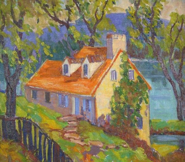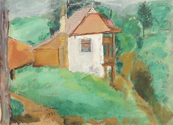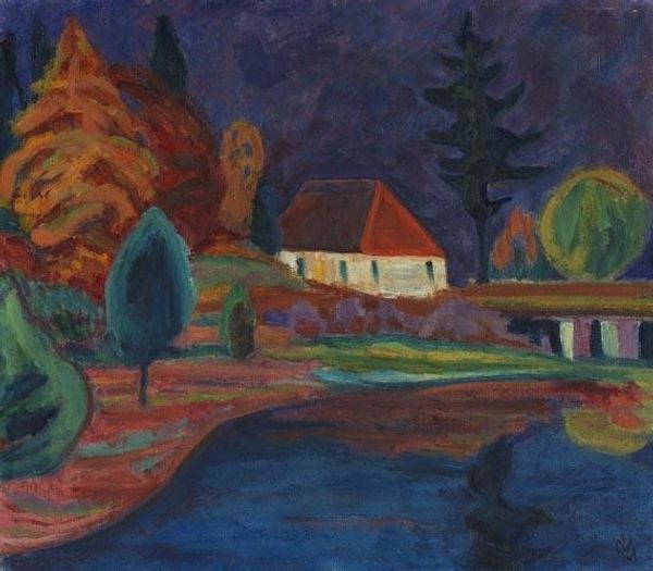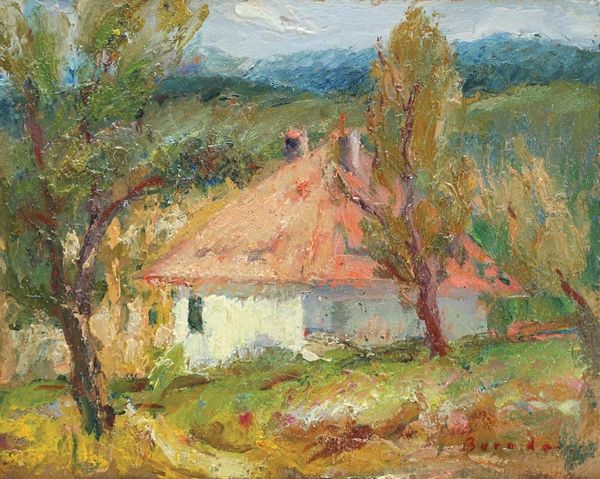 Cyprián Majerník’s “Landscape near Třeboň” is an oil painting, and it feels like a scene recalled from memory rather than observed directly. The colours are muted, but the application is quite physical; it's a painting concerned with touch. The building is central, but it seems integrated into the land. Look closely and you will notice how the green of the field merges with the white of the walls with short, quick strokes. Nothing is precisely delineated, allowing the eye to wander and consider the connections between the manmade and the natural. It's a painting about relationships, how structures emerge from the ground, how trees frame a view, how paint becomes something else entirely. Majerník's approach reminds me of the landscapes of Chaïm Soutine, where forms dissolve into fields of colour. Ultimately, this is not just a picture of a landscape, but an invitation to consider how we see, remember, and reconstruct the world around us.