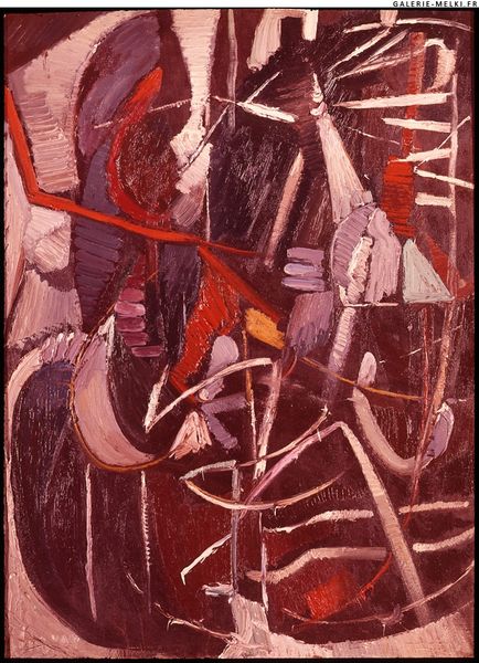 Curator: This oil painting, attributed to Giacomo Balla, is titled "Planet Mercury passing in front of the Sun". Editor: Wow, talk about visual drama. It’s a flurry of movement, dark angular shapes colliding with bursts of orange. It feels, dare I say, aggressive. Curator: Note how Balla uses abstraction to convey motion and cosmic scale. The overlapping forms, those dynamic brushstrokes, aim to capture the speed and energy of a celestial event. Editor: I see it, but it’s not literal, is it? More like he’s distilled the idea of speed into geometric shards. The sharp angles almost give the illusion of cutting through space. Is that part of the Futurist program he subscribed to? Curator: Precisely. Futurism sought to represent the dynamism of modern life. Balla breaks down the image into component forms, focusing on speed, technology and movement. The materiality, here, oil paint applied in vigorous strokes, adds to the dynamism. Editor: So it’s not just about planets, it’s about velocity, a kind of "mph" for Mercury hurtling across the sun. Does it succeed? I’m drawn in, but I struggle with whether its communicative force is stronger as idea or as image. Curator: I argue that it succeeds on both counts. The painting employs visual language, geometric vocabulary, to articulate theoretical concepts about modernity. A powerful synthesis. Editor: You always go highfalutin with this stuff! Still, point taken about synthesizing. Maybe what bothers me is, like much futurist work, the enthusiasm feels forced. A celebration that's a little…anxious? Curator: Interesting reading. Perhaps the anxieties are an accurate reflection of the early 20th century. But, certainly the geometric approach offers more abstraction, and emotion is channeled via dynamic lines and powerful application. Editor: Good point. Ultimately, it is the dynamism and visual language that gets me. A nice ride into abstract ideas of the solar system that definitely stands out. Curator: Agreed, an exceptional exercise in translating astrophysics into an accessible visual vocabulary.