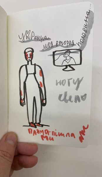 Alevtyna Kakhidze made this untitled drawing with what looks like a marker pen and maybe some colored pencil for the candle flame, on paper. The artist's hand is clearly present in the directness of the line and the starkness of the composition. You get the feeling that they are working through something in real time. It feels immediate, alive, and unpretentious. I love the way the name of the writer Dostoevesky is written on the figure's sleeve. It's as if they are wearing their influences right there on their sleeve, or perhaps the figure is wearing Dostoevesky. I'm reminded a little bit of the work of Mike Kelley, particularly his drawings, in the directness and the slightly outsider quality, though maybe with a touch more tenderness. This piece shows that art is a way of thinking, feeling, and processing the world. It doesn't need to be perfect, just honest.