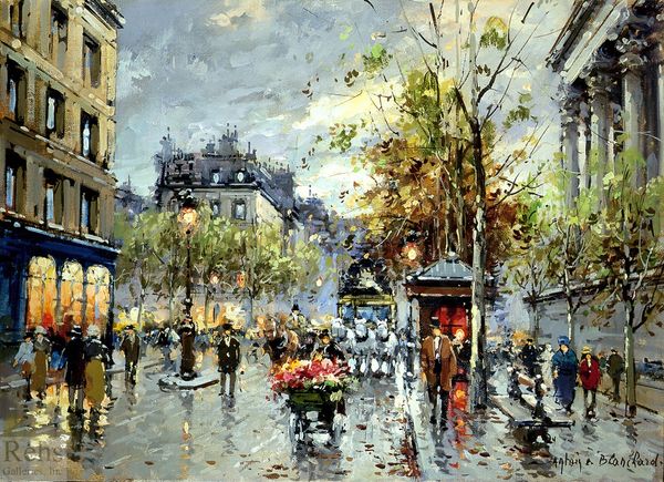 Antoine Blanchard captured the bustling Café de la Paix in paint, with the very name "Paix," meaning peace, emblazoned above the awnings in Paris. This concept, seemingly straightforward, carries a rich history of symbolism and emotional resonance. Consider the Roman goddess Pax, often depicted with an olive branch – a symbol of tranquility and concord. In Blanchard's work, the café becomes a modern temple of peace. Its bright lights and convivial atmosphere acting as a beacon to all. We see how the establishment's name serves as a potent reminder of humanity's enduring yearning for harmony. The cafe is almost like a sanctuary, offering respite from the tensions of modern life. Yet, "peace" is never static. It's a concept constantly being re-evaluated, negotiated, and at times, violently disrupted. The presence of the crowd suggests that we must all act in service of maintaining peace, it doesn't just exist. The symbol is not linear; rather, it ebbs and flows, reappearing across time, ever-evolving, colored by the contexts it inhabits.