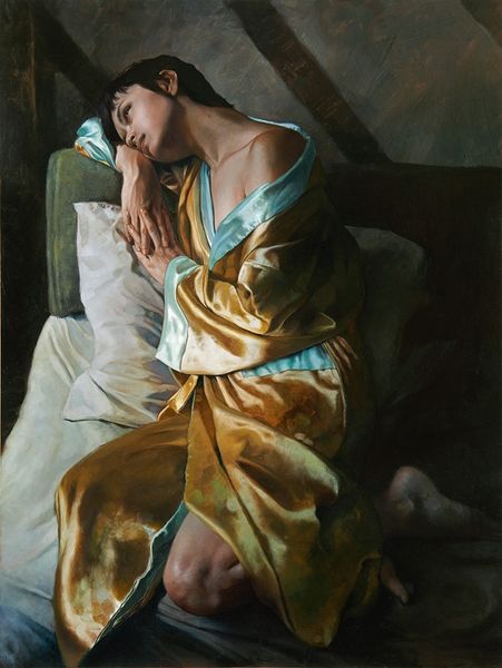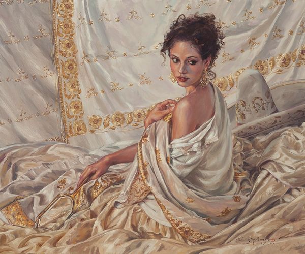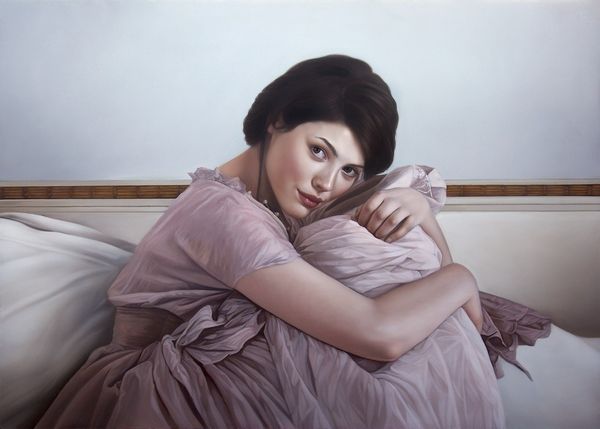 Mary Jane Ansell created "The Line of Beauty I" using oil on canvas. This artwork exemplifies traditional artistic materials, applied with incredible refinement. What immediately strikes me is the remarkable command of technique. The smooth gradations of tone, the delicate rendering of fabric, and the convincing depiction of flesh – all of these are hallmarks of a highly skilled hand. This level of detail requires an enormous amount of focused labor, not just in the application of paint, but also in the preparation of the canvas and the meticulous layering of colors. Yet, it also presents a compelling comment on beauty as a social construct. The very title "The Line of Beauty" alludes to William Hogarth’s theories of aesthetics, questioning the labor involved in cultivating an image. Ansell invites us to consider the effort, time, and skill invested in the creation of illusion. Ultimately, "The Line of Beauty I" challenges us to think about the labor involved in both its making and its subject, blurring the lines between art, craft, and social commentary.