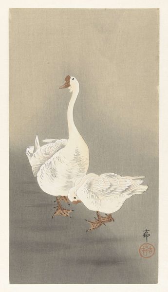 Xu Beihong made this watercolor painting of three ducks with ink on paper, and it's the kind of piece that makes you appreciate the beauty in simplicity. I love the texture, the way the brushstrokes are so visible, it’s like you can feel the artist’s hand moving across the paper. Look how he defines the ducks' feathers with loose flicks of gray wash, creating a sense of depth without being overly detailed. The translucent quality of the paint gives the whole scene an ethereal, dreamlike quality. And the reed-like grass is so simple, yet conveys so much. There’s a playful energy in the painting, it reminds me of some of Matisse’s more spontaneous works. But, ultimately it’s uniquely Beihong’s, a celebration of the everyday, rendered with a delicate touch. It's a great reminder that art can be about embracing ambiguity and finding beauty in the unexpected.