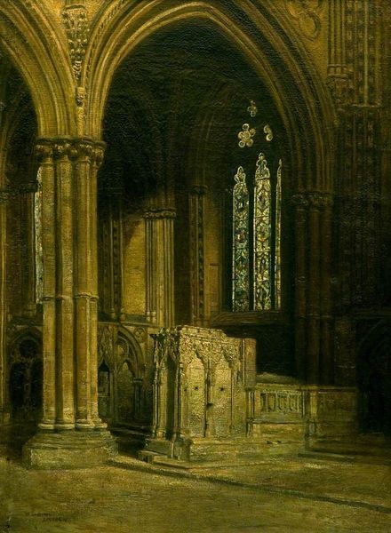 Ralph Hedley painted this sketch for 'Seeking Sanctuary' in the late 19th or early 20th century. The artwork depicts a scene of someone seeking refuge within a grand, imposing church. During this period in England, the concept of sanctuary within religious institutions carried significant historical and social weight, offering protection to those fleeing persecution or seeking absolution. Hedley's sketch captures this tension, contrasting the vulnerability of the individual with the formidable architecture of the church. The setting is evocative of the late medieval or Tudor periods when the right to claim 'sanctuary' was frequently debated. Was Hedley making a comment on the social precarity of his time? Is this a conservative painting, harking back to an idealised version of the past? Or is it more progressive, and focused on the plight of marginalized individuals. To understand Hedley's motivation more fully we would need to delve into his personal papers and the records of exhibitions in which he participated. We might also need to study the social and legal history of the concept of sanctuary. The meaning of this artwork, like all artworks, is contingent on its historical context.