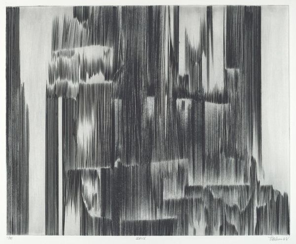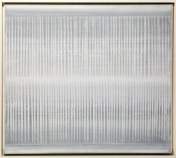 Curator: Before us we have Heinz Mack's "Licht-Relief", created in 1958. Mack, a prominent figure in Kinetic Art, fashioned this piece using metal to construct a captivating relief. Editor: Whoa. First impression? It’s like gazing into a high-tech waterfall—icy, sleek, yet somehow also organic in its texture. What’s the deal with kinetic art, anyway? Does it actually *move*? Curator: Not necessarily move, but certainly suggest it. Kinetic art explores movement or perceived movement. Here, the arrangement of lines catches and reflects light in a way that gives the illusion of motion, wouldn’t you agree? The light plays a critical role. The materiality speaks volumes, its form a stark arrangement of light-reflective structures. Editor: Totally! It’s like he’s sculpted light itself! The abstraction, plus the texture...it’s almost meditative. Reminds me of those ASMR videos with crinkling paper – a very satisfying visual rhythm. Do you think that's intentional? Curator: The intention, as with all art, is multifaceted and subject to interpretation. What is concrete, however, is its exploration into pure visual sensations using structured, geometric form. Abstraction became a vital means of communicating subjective truth for many artists during that time. The material properties offer a study into vertical linearity. Editor: Truth, huh? Maybe the truth that beauty can be found in even the most regimented structures. Kinda contradicts that “artistic freedom” trope, no? Curator: Freedom within limitations often yields more compelling results than total absence of structure. It highlights the intentionality in breaking free from limitations while showcasing an artist's proficiency within specific paradigms. Editor: True, true. A cage of our own making, beautifully gilded! Curator: Indeed. Mack’s “Licht-Relief” gives much for careful considerations, its deceptive simplicity invites extended interpretation. Editor: Okay, Heinz Mack, you’ve definitely bent my brain in a good way today.