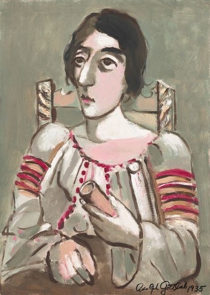Joan Miró painted this portrait of Juanita Obrador in 1918, and what strikes me is how he’s figured out a way to make pattern and portraiture collide. Look at how the background presses forward, almost flattening the picture plane. The skin tones are built up from planes of muted pinks and ochres, with that daring slash of rouge on her cheek. Then, take in the dark lines defining the composition – they're bold, almost like stained glass. The striped shirt is a total visual rhythm, each stripe thick and thin, dancing across the canvas. There’s a tension here, a back-and-forth between representation and abstraction that you see echoed in the work of someone like Picasso. But Miró brings his own playful touch, hinting at the surreal landscapes he’d become known for. It feels like an invitation to see the world not as it is, but as it could be: a beautiful, slightly off-kilter dream.