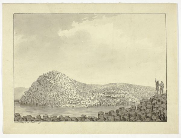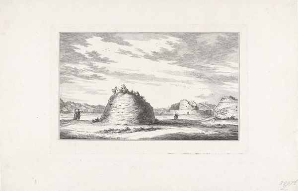 Editor: This engraving from 1764, titled "Potvis gestrand bij Egmond aan Zee," depicts a beached whale with a crowd of onlookers. I’m struck by how the artist, Vincent Jansz. van der Vinne, captured the sheer scale of the whale against the human figures. It seems like the picture is not as interested in realism and more in geometry. What stands out to you, looking at this print? Curator: The strength of this work, for me, lies in its structural organization. Observe how Van der Vinne divides the composition. The large whale acts as the dominant horizontal form, immediately establishing a clear, almost stark, division of space. Notice also the clouds, landscape, the crowd and the lines of their bodies, can you see what structure it establishes? Editor: Yes, now that you point it out I see it. They work together to establish another horizontal band that repeats this motif of division, only on the higher portion of the engraving, creating more rhythm in the piece. Are those sorts of decisions usually calculated for effect, or did the artist just think it looks nice? Curator: Formal decisions are never arbitrary. Note how the lower register, the inscription panel, reiterates the whale image in miniature. This echoes the horizontal emphasis while adding a layer of commentary—perhaps on perspective, or the act of observing. Editor: It's interesting to see how these layers add meaning, just from the shape, placement and use of forms. Curator: Indeed. Van der Vinne's strategic use of line, mass, and spatial relationships is ultimately what conveys the work's underlying theme. And it provides a basis to dig deeper! Editor: That really opened my eyes to appreciate the visual composition. Thanks so much!