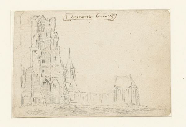 Curator: Here we have "Stadsgezicht met Leeuwpoort te Emmerik," a cityscape made by Abraham de Haen the Younger in 1731. It’s currently held at the Rijksmuseum. Editor: It’s delicate. The scene has been quickly captured with fine ink lines on paper. Almost like a fleeting thought. Curator: Exactly. It gives us a peek into Emmerich during the Dutch Golden Age. Given the fortifications depicted, I think this is also about power dynamics and who held sway at this time. The very act of mapping and sketching a city served as a form of claiming it. Editor: Interesting point. To me, the choice of ink as the primary medium tells a story in itself. Ink requires skill; control. We need to think about its cost relative to other available drawing materials. The materiality connects it to craft and how valued it was. Curator: Perhaps, although it is typical of landscape drawings made in the baroque tradition. It can suggest refinement, maybe? How the subject sees his subject represented with grandeur and self-assurance, right? And, I also feel it shows how this specific community felt, culturally. Editor: And did the general population think the same as their representation? And what about labor division and urban development—these are the result of material realities, after all. Who built those walls and what resources were at their disposal? Curator: Of course, considering such factors is valid, since their construction could've marginalized some people. I see these issues in the structures themselves, as permanent expressions of identity. How people navigated that cityscape defined the social life within and around the wall's parameters. Editor: So it makes sense to reflect on what the physical process behind this creation actually means—and for whom. From resource allocation to labor power, to skill as craft that might define your persona. That pen stroke carries weight. Curator: Yes, there's so much here; a tangible and material place to reconsider these sociopolitical ideas. It definitely changes my viewpoint about it, understanding those resources. Editor: Mine, too. Examining art through its social context makes for a layered, richer reading.