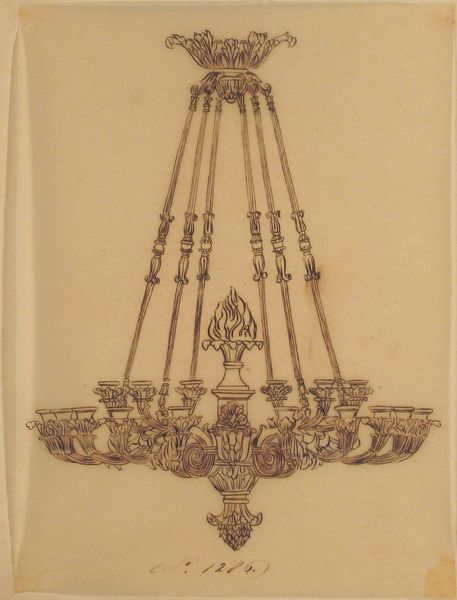 Editor: Here we have an ink and pencil drawing, "Design for a Chandelier," created by an anonymous artist in the 19th century. It has an almost ghostly presence; the chandelier’s ornate details seem to emerge softly from the paper. What strikes you most about this design? Curator: What strikes me? Well, besides the obvious, the potential to transform a room. This isn't just about light, is it? It's about creating an atmosphere, a focal point for conversation. Look at the line work – almost a daydream made real. It feels so immediate, like the artist was sketching possibilities, and that raw energy lingers. I find myself wondering: did they imagine the room it would inhabit? A grand ballroom? Or a more intimate space? What do you see there, in the details of the flourishes and curves? Editor: I notice how the sketch quality almost gives it a sense of movement. It's not static; it feels like the chandelier is gently swaying, casting flickering light. But did designs like this reflect what was actually possible with the technology of the time? Curator: Ah, there's the rub, isn't it? Was this pure fantasy, or grounded in the practical? I'd argue it's a dance between the two. There’s a sense of the craftsman pushing boundaries, exploring what could be, maybe even challenging the limitations of the materials. Don't you think that's where the magic really lies, in that tension? In the beautiful impracticality of it all? Editor: I guess I do. It's less about functionality and more about the spirit of innovation and artistic expression. I didn't consider that at first glance. Curator: Exactly! Sometimes, the most illuminating designs are those that reach for the seemingly impossible. And isn’t that a lovely thought to take away from a simple chandelier sketch? A little bit of "what if?" shining down on us all.