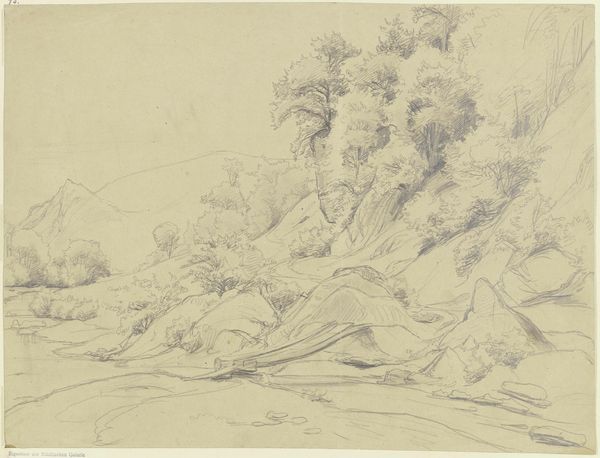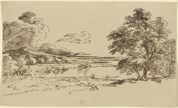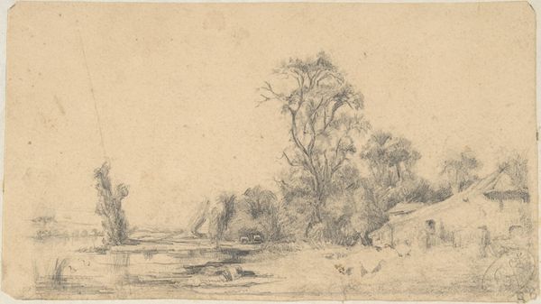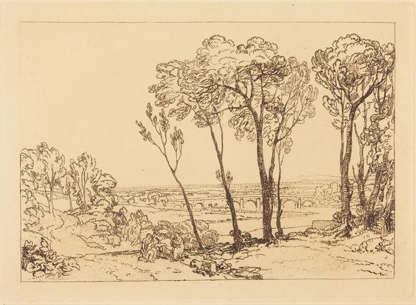 Editor: Here we have Alphonse Legros' etching, "Traveler Reclining on the Grass." I'm struck by the starkness of the image; the figure is almost consumed by the landscape. How would you interpret Legros' engagement with materiality in this print? Curator: I think that’s a key aspect. Let's consider etching itself. The copperplate, the acid... they're industrial processes adapted for art. Legros isn't just depicting a scene; he's actively participating in a means of production. How does this emphasis on a reproducable method shift our view from 'art object' to 'art product'? Editor: That's a great point. It challenges the idea of the artist as a solitary genius, focusing instead on the system that allows the image to be made and distributed. But is the “art product” necessarily debased as a result? Curator: Not at all! Think of the implications. Etching made art accessible. It put images in the hands of a wider public, people previously excluded from art consumption. Legros is participating in a quiet revolution, isn't he? It shifts agency to the maker, bypassing traditional systems of power in the established art world. Are there are further ramifications from the distribution of the ‘art product’? Editor: Well, mass reproduction democratizes the image. It becomes less about unique value and more about shared visual culture. Curator: Precisely! The materiality, the mode of production, it all ties directly into social impact. Consider the labor involved, too, and how the ‘Traveler’ mirrors Legros, taking rest after creating art. Editor: I never really thought about an artwork as something produced through a process as an extension of the culture surrounding its creation. Thanks! Curator: Absolutely! It makes us consider art as part of a material exchange between artist, object, and consumer. A far cry from the artist-as-god perspective!
