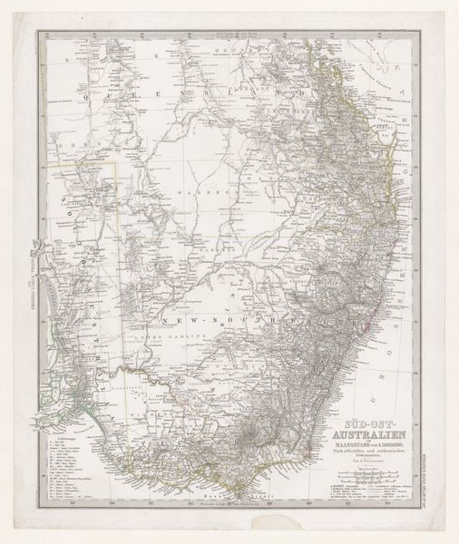 Editor: This is a pilot’s scarf, a silk map of India and Burma, dating from 1940-1945. The watercolours create such a subtle, almost faded palette. What strikes you most about the formal qualities of this object? Curator: The graphic arrangement is paramount. Observe how the geographical features are delineated using distinct colour fields: ochre for the terrain, blue for the waterways. Note the careful chromatic gradations in the topographical key. How do these structural elements contribute to the visual effectiveness of the map? Editor: The distinct colour fields certainly make it legible. The way the blues of the water wind through the ochre land creates a kind of rhythm. Is the suggestion of movement significant? Curator: Movement is suggested by the winding rivers. What else do you see? The silk substrate introduces a textural dimension. Consider how the warp and weft interact with the painted surface. Is it just me or does the aging on the material have its own aesthetic appeal? Editor: I think you’re right. The creases and gentle discoloration do give it an extra depth, adding to its impact. The artist also cleverly balances precision with some bleeding of the watercolours, creating an intriguing tension between representation and abstraction. Curator: Exactly. The visual tension is vital. Ultimately, this pilot’s scarf is compelling because of the sophisticated manipulation of color and texture. What appeared initially utilitarian reveals itself to be quite aesthetically potent, through a skillful interplay of form and function. Editor: This has really changed the way I look at maps! The materiality combined with the artistic application of the watercolour elements makes it far more visually interesting. Thank you!