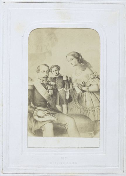 Curator: This somber yet meticulously rendered print is entitled "Lieutenant General Thomas J. Jackson and His Family," created in 1866 by William Sartain. It resides here at the Metropolitan Museum. What are your immediate impressions? Editor: Austere. There is a stillness, a posed formality that almost feels…funereal, despite the presence of the child. It projects this 19th century sense of idealized and constrained domesticity. Curator: Observe how the artist constructs the scene. The subjects are arranged along a horizontal axis. The table creates a firm line dividing the composition, reinforced by the alignment of the busts on the wall behind them, further structuring the family portrait into rigid geometric forms. Editor: Yes, there is that feeling again; of objects frozen in time. Beyond the clear Civil War context of memorializing Stonewall Jackson, those busts above them – historical figures now themselves icons - create an explicit alignment of Jackson with a certain heroic lineage. The artist attempts to portray the figure in an honorific manner through careful symbol deployment. Curator: It's the printmaking technique—engraving—combined with charcoal drawing—that contributes greatly to the formal impact of this work, wouldn't you agree? Look closely at the cross-hatching that builds the tonality and defines each figure, almost sculpting their forms from darkness. Editor: Absolutely. It enhances this sense of enduring gravity and emphasizes a need to evoke both Jackson's military fame and his role as husband and father. But the faces – particularly Mrs. Jackson's – project something more than serenity, perhaps an uneasy melancholy. I wonder how her contemporaries understood that contrast, given her husband's recent death in 1863? Curator: Context deeply enriches how we view art. Consider how those historical implications combine with sartorial and domestic choices to create a work which oscillates between public commemoration and private grief. This interplay produces what might be best regarded as a meditation on memory and representation. Editor: Yes, that tension between intimate family portrait and formal public iconography speaks to the complexity of historical memory, as it lives in objects such as this image.