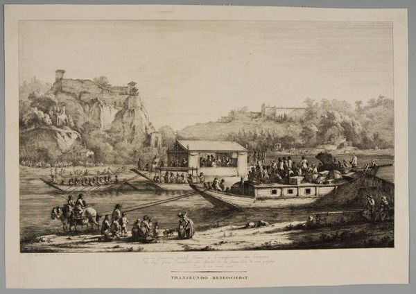 Curator: Looking at this print by Giovanni Battista Piranesi, titled "Perspective of New Square in Padua," one can't help but get lost in the details. Editor: My gosh, what a swarm! The density of life – of bodies and beasts! – nearly eclipses the buildings themselves. It's more chaotic pageant than piazza, I think. Curator: Exactly! Piranesi’s print work often displays meticulous attention to both architectural grandeur and the bustling lives intertwined within those spaces. Consider the materiality: the ink, the paper, the labor involved in etching each line, a mass produced view made available. Editor: Ah, "mass produced" pulls some of the romance out, but it fits, doesn't it? This image itself, meant to be consumed, circulated, a little fragment of Padua becoming commonplace, known. But the way the scene surges forward— that compressed foreground with a soft, mountainous distance— lends itself to a fevered sense of spectacle. I bet that was quite a market day. Curator: No doubt! Also, by exploring prints and engravings, we interrogate the consumption of images as a reflection of socioeconomic patterns prevalent during the Italian Renaissance. Were these views intended as mere souvenirs or to shape architectural ambitions in other regions? Editor: Souvenirs of fantasy, maybe. No square feels quite like this; more dreamed than documented. Looking closely, the people have a flattened, almost hurried appearance, absorbed within the enormity of the space and the occasion. It creates this strangely captivating disquiet—a collective solitude within a crowd. Curator: The Baroque dynamism he infused! But what if Piranesi meant to question this urban planning? Was he truly celebrating industry or subtly critiquing the social conditions embedded within it through his distribution of the medium? Editor: Critique and celebration, maybe existing in tandem—an artist seduced by form and spectacle even when interrogating its essence. This vision leaves a lasting echo in the mind. Curator: Indeed, contemplating both its production and cultural implications is enriching.