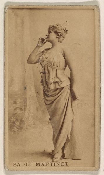 This promotional card, dating from the late 19th century, was printed by W. Duke, Sons & Co., using photography and offset lithography. Far from traditional artistic media, these were the tools of mass production. Consider the material: thin card stock, coated with a sepia-toned image of Mlle. Saracco, a performer of the time. Note the contrast between the high-cultural subject matter - an actress, striking a pose - and the low-cultural application, as a giveaway inserted in cigarette packs. The card’s manufacture speaks volumes about the era's industrialization and consumer culture. Photography allowed for the easy reproduction of images, while advances in printing made mass distribution possible. This wasn't about artistic expression, but about brand visibility and customer loyalty. The card is also a little document of the labor involved, from the photographer and the printing workers, to the very farmers cultivating tobacco. So, next time you light up, remember this little card, and the complex web of making that it represents. It invites us to reconsider what we value, and how everyday objects can reflect broader social forces.