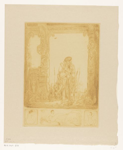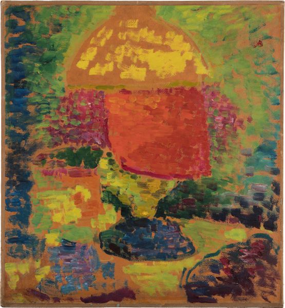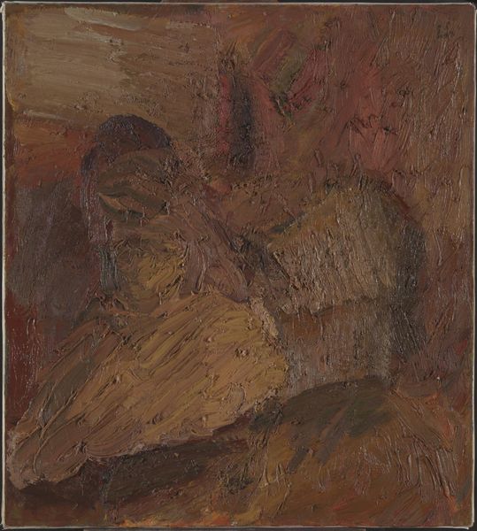 Editor: Here we have Paul Gauguin's "Tahitian Woman with Evil Spirit," created around 1899-1900. It looks to be primarily watercolor, chalk, and pastel on paper. The figure is… obscured, almost fading into the ochre background, which lends a haunting mood. What strikes you about this piece? Curator: What I notice immediately are the raw materials – the layering of chalk, pastel and watercolor. We see Gauguin experimenting with readily available, relatively inexpensive media to represent, perhaps even construct, his vision of Tahiti. The paper itself becomes significant, a surface upon which this constructed "exotic" identity is created for consumption. Consider how this differs from traditional oil paintings, the art associated with the European establishment at the time. Editor: That's fascinating. So you’re saying the choice of materials and their accessibility impacts our understanding of the image itself and Gauguin’s position in Tahiti? Curator: Precisely. He’s deliberately sidestepping high art materials and traditions. Look at how the application – the sketchiness of the lines, the blending of the colours – suggests immediacy, perhaps even a manufactured ‘authenticity.’ Consider the economic relationship between Gauguin, his Parisian dealers, and the Tahitian people he depicts and how those dynamics play out in the art he makes. Was this art being consumed to perpetuate specific stereotypes of Tahitian women at the time? Editor: I never considered the art market’s role in this work. It’s incredible how looking at the materiality of it changes my perspective entirely. I'm beginning to consider all of the levels of production: creating, selling, consuming! Curator: It reframes the image doesn't it? Away from simple aesthetics towards thinking about the forces – artistic, economic, and social – that were at play in its making. Editor: Definitely. I’ll be thinking about materiality and consumption for a while now. Thanks!