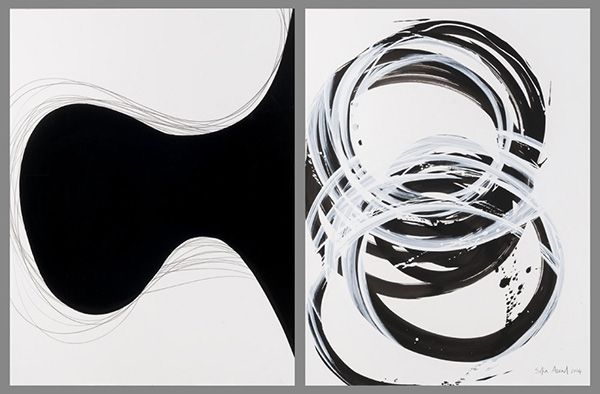 Editor: This acrylic painting from 2008 is simply called "Untitled," by Adnan Coker. It's hard not to notice the monochromatic, Op-Art inspired shapes... What can you tell me about this work? Curator: Notice the stark acrylic application. No impasto here. The mechanical smoothness draws our attention to the processes needed to create these gradients, right? This speaks to Op-Art's project of making the artistic hand virtually disappear. The labour involved in creating the illusion is masked to draw our eye to the reception of these illusory forms. How does this piece challenge our understanding of high art versus the supposedly lesser medium of graphic design, which makes extensive use of commercial modes of acrylic painting? Editor: That’s interesting… I never considered the role of labour here, particularly when it looks so, well, seamless. How does it play into the context of Op-Art’s time? Curator: Good question! Consider the broader consumption patterns of the time. Op-Art arose alongside the mass production of goods; and the labor to create the goods that became popular starting in the 60s. Coker made this in 2008, however. How do you think its meaning shifted, from the height of industrialisation to the rise of globalized finance? Is there an irony to creating illusions through labour that, today, is increasingly hidden? Editor: I guess there's almost a nostalgia to the physical creation, the labor becoming valuable in an era of digital art. Curator: Precisely. It reclaims value through visible means of production, critiquing art’s detachment from labor even as it reinforces its own market value. What did you learn about the labor behind art today? Editor: I see that I have a lot more to think about. Thanks for revealing how Coker's material process creates these unique points.