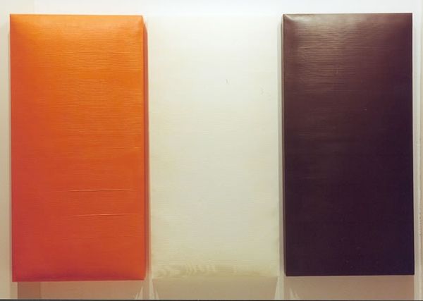 Editor: This intriguing mixed-media piece is an "Untitled" work by Robert Morris, created in 1976. The dark material and folded geometric shapes give it a very austere, almost somber, quality. How do you interpret this work, considering Morris' broader artistic practice? Curator: Morris' work consistently challenges our perception of form and space. Looking at the material—probably felt—and the process of folding, we need to consider how it resists traditional sculptural form. It highlights the labor involved: the cutting, folding, and hanging. This act itself, this manipulation of the felt, is as important as any representational meaning. Editor: So, it’s less about what it represents and more about how it was made and the material itself? Curator: Exactly. Consider also that Morris emerged from a minimalist context that was incredibly rigorous, formal and often relied on industrial means. His turn toward felt, and seemingly haphazard arrangements, brings in an element of the body, and implicitly the labor that makes art happen. Editor: I see, it brings attention to the hand of the artist, or craftsperson, almost. It also raises questions about industrial versus handmade. How does this fit within the broader art world in the 1970s? Curator: The 1970s witnessed a growing interest in process-based art, performance, and questioning established art hierarchies. Works like this offered a critique of mass production, challenging the clean lines of manufactured objects. It brings our attention back to how things are made and consumed, prompting us to rethink our relationship with materiality. Editor: I hadn't thought about the element of consumption before. It is fascinating how simply changing the material changes the message. Thanks for sharing your perspective! Curator: Of course! Analyzing the material and means of production allows us a far deeper understanding of the work’s cultural and societal significance.