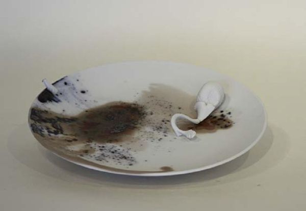 Rodrigo Franzao made "Hammer" with a matchstick, pigment, and who knows what else, making it look like something between sculpture and painting. The blue circle has been breached, kind of violently, and in that tear is a match, like an accident or an intrusion. The match sits there among other accidents: some drips, some rogue pieces of wire. The surface has texture, but it's not just applied, it's built into the support. It's all a little wonky and unsettling. Look at the place where the match pierces the surface. Isn’t there something satisfying about the raw edges and the layers revealed? It reminds me that art-making isn’t about answers; it’s a process of poking around and seeing what happens. It's kind of punk, like a John Baldessari piece, taking a jab at the preciousness of art, with a healthy dose of humor. It’s like Franzao's saying, “Here’s a painting, but don’t take it too seriously.”