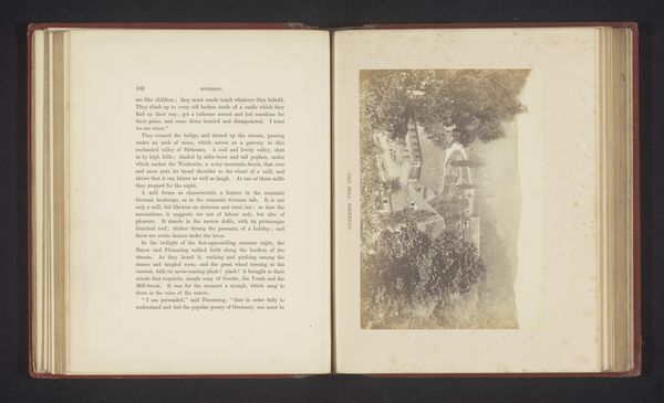 This small photograph of Ann Hathaway's cottage was created by Ernest Edwards in the 19th century. The monochromatic palette of the image evokes a nostalgic sentiment. The artist uses light and shadow to articulate the structure of the cottage. The geometric shapes of the building are juxtaposed with the organic forms of the surrounding foliage, creating a dynamic tension within the composition. The photograph captures not just a building, but an intersection of nature and culture. The cottage, with its visible wear and textured surfaces, becomes a signifier of time and history. Edwards’ careful attention to form and texture encourages a reading of the cottage as a symbol, a signpost directing us to reflect on the cultural construction of history and the romanticization of the past. It prompts a meditation on how we assign value and meaning to historical sites.