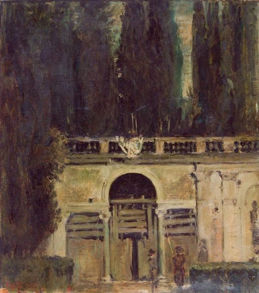 Editor: So, here we have Antonio Mancini’s "Italian Town View," an oil painting depicting a cityscape. I’m really struck by the thick, almost muddy texture of the paint, especially in the foreground. It gives the buildings a sense of weighty presence, almost like they're rising from the earth itself. What do you see in this piece? Curator: I’m interested in that weighty presence you mention. Look at how Mancini has handled the material; the oil paint is not just representing architecture, it's building it anew. The brushstrokes themselves become the bricks and mortar. Considering the potential social context, were these materials readily available? How might material scarcity influence his artistic choices? Editor: That's fascinating! I hadn't considered the accessibility of materials. So, you're saying the choice of oil paint, and its application, reflect something beyond just aesthetic preference? Curator: Precisely. Think about the labor involved in acquiring, preparing, and applying the paint. Mancini isn’t just depicting a town; he’s engaging with a specific mode of production. Were there alternative materials available? And how might the "impressionistic" style challenge the norms of traditional high art, by drawing our attention to the material conditions of its creation? Editor: I guess, at the time, focusing on the roughness and texture of the paint itself, rather than just trying to create a perfect illusion of a cityscape, was a way of making a statement? About labor and material? Curator: Absolutely. And perhaps even critiquing the prevailing social structures through a focus on the materials themselves. He encourages us to reflect upon how art is made, and what that making signifies. It opens avenues to consider how social factors shape artistic choices. Editor: Wow, I hadn’t thought about the painting in those terms at all. I just saw a cityscape. But now I see it as a record of its own making, embedded in a specific time and place. Curator: Exactly. Thinking about the materials and their manipulation brings the artwork into a wider social and historical conversation. It shifts our focus to the art of production, not just the production of art.