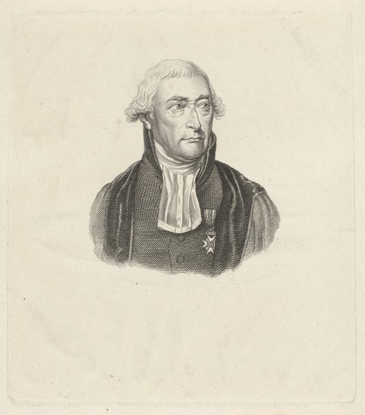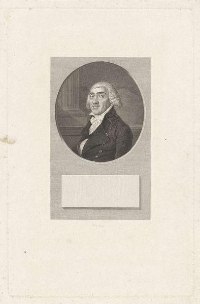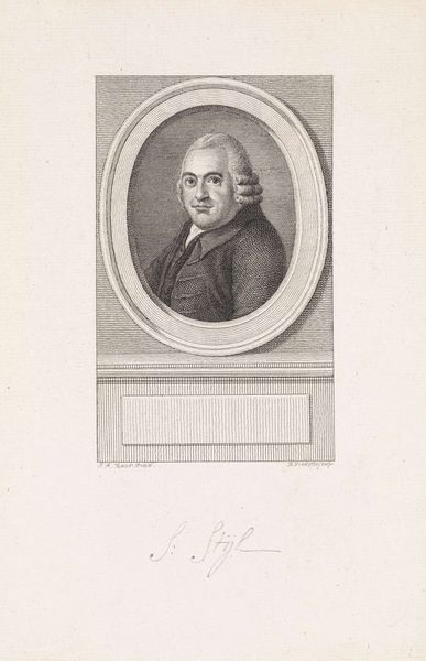 This is Reinier Vinkeles's portrait of Pieter Vreede, an engraving that captures the sitter in an oval frame. The oval, a shape recurring throughout art history, is a symbol laden with meaning. Emerging from antiquity, ovals were often associated with concepts of rebirth and cyclical time. Look at the subject’s serious expression; this is not an image about the individual only, but about the concept of leadership. It is interesting to consider, too, how the sharp, angular lines of his coat contrast with the soft curve of the frame. It's a subtle visual tension, perhaps reflecting the conflicting forces that shape an individual's life and legacy. The oval is a motif that resurfaces repeatedly, each time imbued with new layers of significance. Whether in a Renaissance painting, a Baroque sculpture, or here, in an engraving, it engages us on a subconscious level. It evokes the ever-turning wheel of history.