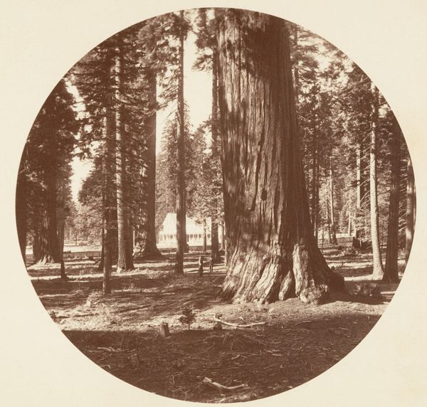 Carleton Watkins captured "The Empire State - C. Grove" with a wet plate camera, a majestic sequoia that seems to touch the sky. Here, we see more than just a tree; it is a symbol of nature's enduring power, juxtaposed with the transient presence of man. Observe the two figures at its base. They remind us of our smallness in the face of nature's grandeur. This echoes ancient myths where trees symbolize life and wisdom, such as the World Tree of Norse mythology, Yggdrasil, its roots reaching down into hell, its branches reaching up to the heavens. The tree, a silent witness to time, appears in art across cultures—from the Tree of Knowledge in religious texts to landscape paintings evoking sublime awe. Its presence is not merely botanical; it is a vessel of collective memory, reminding us of nature's constant, indifferent strength. We are drawn to the foot of the tree, and unconsciously seek a connection with the natural world. Watkins’ photograph is not simply a record but an invitation to reflect on the enduring power of nature that transcends time, echoing through art and myth, evoking primal emotions.
