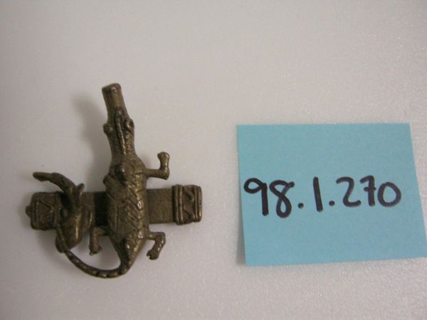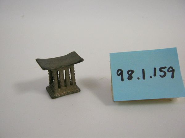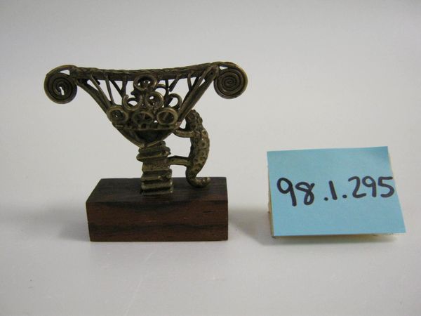 This miniature chair was created by the Akan people of Ghana. It is a goldweight. These weights were indispensable tools in the commercial transactions of the Akan people. From the 15th century onwards, the Akan became key players in the gold trade with Europeans, and this required the use of standardized weights and measures. The weights themselves took many forms. Some were geometric, but many were figurative. Representing people, animals, plants, and objects, they were grounded in the culture and social history of the Akan. A chair such as this one, for example, could symbolize leadership, authority, justice, or community. The production and use of goldweights declined in the early 20th century. Nevertheless, the weights survive as a reminder of the ingenuity of the Akan people, and their participation in global exchange. The interpretation of such objects rests on the work of historians, anthropologists, and art historians, using a variety of research resources to reconstruct their cultural meaning.