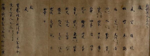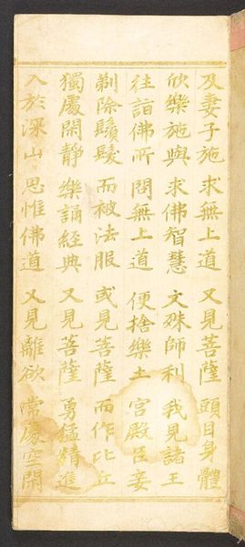 Curator: This striking scroll, "The Former Deeds of King Wondrous Splendor," is from the Edo period, signed by Tosa Mitsuoki, and commemorates Tokugawa Ieyasu. What stands out to you initially? Editor: The contrast between the dense text and the faded, ethereal figures is quite remarkable. What can you tell me about the commissioning of pieces like this? Curator: It was commissioned by Retired Emperor Gomizunoo. These Buddhist texts, especially when adorned with lavish frontispieces, became powerful symbols of legitimacy and piety in a politically turbulent era. How do you think the scroll's function affected its imagery? Editor: It's fascinating to consider how this functions as a political object, not just a religious one. I hadn't considered that. Curator: Exactly! It forces us to consider the interplay between religious devotion, imperial power, and artistic expression. A complex, and potent combination. Editor: I'll certainly look at these scrolls with new eyes now, thinking about power structures and image politics. Thanks!