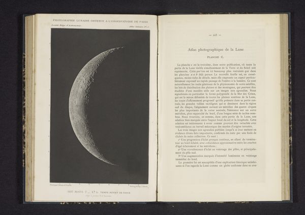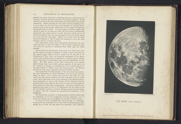 This photograph, titled *Gezicht op de Maan*, captures the moon with stark clarity. The image is structured around the contrast between the moon's illuminated surface and the deep black of space. The composition invites contemplation on form and representation. Notice the gradient of light across the moon, transitioning from bright, reflective areas to shadows that define its craters and mountains. This stark contrast emphasizes the moon's spherical form and its rugged texture. The photograph creates a semiotic interplay between light and dark, representing knowledge and the unknown. Ultimately, this work serves as a reminder of photography's unique ability to capture and transform our perception of the cosmos. It challenges us to consider the interplay between scientific observation and aesthetic representation.