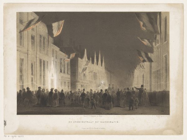 Curator: Canaletto's rendering of "The 'Giovedì Grasso' Festival before the Ducal Palace in Venice," likely created between 1765 and 1766 using ink, watercolor, and etching, plunges us right into the heart of Venetian revelry. What's your first take? Editor: A swirling pageant of forms! My immediate impression is one of a tightly choreographed spectacle, all rendered in subdued washes that emphasize the architecture more than the people themselves. The materiality really hits you—the heavy, aged paper contrasting with the crisp lines. Curator: Exactly! The architectural rendering of the Doge's Palace and that temporary pavilion has an obsessive quality—almost like he’s more enraptured with the stones than the party unfolding. One can feel the precision of each brick! I see a spirit that transcends time, connecting us with that historical moment. Does it resonate similarly for you? Editor: I do, but through a different lens. I'm intrigued by Canaletto's deliberate choice to highlight these imposing structures while almost flattening the human figures. It whispers to me about the Republic's power, displayed and reinforced through orchestrated public events, consumed en masse. I wonder, what of the actual production, of preparing for such lavish festivals? Where is that labor represented? Curator: A lovely point—we tend to overlook the back-stage buzz! However, I find it is also capturing the ephemeral nature of joy. The subdued colors speak not just of architectural prowess but a quiet understanding that even the wildest of parties is fleeting. It reminds me of my grandmother’s smile, a poignant memory fading at the edges, as the watercolor surely will... Editor: The fading also gets me thinking. Consider how the materials themselves would be obtained and the cost, or relative worth, in Venice at the time. Pigments, paper… they are tied up in social hierarchies. Those fleeting moments of joy rested on unseen, considerable resources. Curator: Such is life; ephemeral joy, costly foundations. Perhaps Canaletto unconsciously echoed that paradox. What I draw from the art, looking again now, is the knowledge that it all—the revelry, the power, the architecture—morphs, shifts, alters with the passage of time, becoming more valuable because of its historical richness, its patina. Editor: Absolutely, an important lesson. A complex rendering!