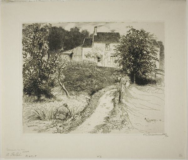 Johannes Groth made this etching, Landskab med å, using a metal plate to create a scene filled with delicate lines and tonal variations. The magic of printmaking is in how the artist coaxes depth and atmosphere from a flat surface, and here, Groth is definitely working some magic. Look at how the ink catches on the paper. The texture in the foreground, where the grass bristles, is so different from the smooth, reflective surface of the water. Then there's the cluster of trees on the right, practically vibrating with detail. I wonder what kind of tools he used to achieve these effects? This piece reminds me a little of Whistler's etchings—that same quiet attention to light and shadow and the way he captures a sense of place. Of course, art is always a conversation. And, like any good conversation, it's often more about the questions than the answers.