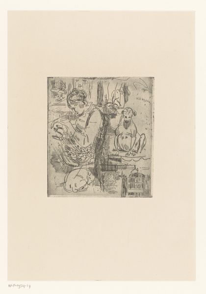 Willem van Konijnenburg made this print, Jager met hond, at some point, using a drypoint technique to create velvety dark lines. The tonal range here is achieved through the varying density of lines and cross-hatching. Look at the hunter’s face, and how the artist uses the close, nervous lines to give him form. The light and shadow seem to emerge organically from the physical act of mark-making. It’s a testament to how process can become meaning. I’m really drawn to the way Konijnenburg renders the dog. With just a few, carefully placed strokes, he conveys the animal's texture and weight, and the sense of it being a solid, breathing creature. Konijnenburg's work reminds me a little of Odilon Redon, another artist who embraced the power of black and white to create worlds that are both familiar and dreamlike. It suggests art is a conversation across time, where artists borrow, respond, and reimagine what came before.