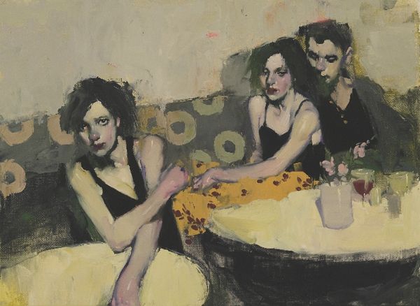 Joseph Lorusso painted "Le Donne", a painting whose date is unknown, capturing a moment of intimate observation. Immediately, one is struck by the painting's warm, muted palette. The ochre and umber tones create a sense of enclosure, inviting the viewer into a private space. The composition is structured around a division of space. On the left, a woman sits pensively at a table, while to the right, two figures peer out from a window or doorway. This arrangement creates a dynamic tension between interiority and exteriority, inviting questions about the relationship between the figures. Lorusso's brushwork is loose and expressive, adding a layer of texture and depth to the scene. There is an interplay of light and shadow, which serves to emphasize the figures' forms. The painting is less about representation and more about the interplay of form, space, and texture. It invites the viewer to consider the psychological dimensions of the image and reflect on the way it challenges conventional modes of seeing.