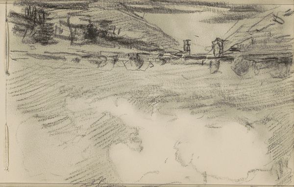 Editor: This drawing, "Rivierlandschap met molens," or "River Landscape with Mills," by Johan Antonie de Jonge, is probably from 1909, done in pencil. I find it evocative, even melancholic, with its soft lines and muted tones. What do you see in this piece? Curator: The quick, almost frantic, application of pencil reminds me of other studies done en plein air, yet, the subject evokes the enduring presence of the Dutch landscape. Tell me, what symbols do you recognize and what cultural narratives might they trigger for viewers across time? Editor: Well, the mills obviously suggest Dutch ingenuity and control over nature. The river implies commerce and connection, but the overall sketchiness also conveys a sense of transience... a moment captured but fleeting. Curator: Exactly. These visual cues—mills, rivers, the fleeting nature of the sketch itself—speak volumes about the cultural relationship to land, labor, and progress in the Netherlands. Notice how the reflection isn't just mimicking reality, it distorts it—introducing uncertainty and the ephemeral qualities of existence. The symbols of power – the windmills – are softened in this image, like memories, do you think? Editor: That’s a great point. It almost feels like the drawing is a memory itself, fading and impressionistic rather than a hard factual statement. I hadn’t thought about it that way before. Curator: Consider this also a commentary. What survives in the cultural memory often distorts as much as it informs. So the quick sketch and reflection of form encourages questions of "what is retained? " and "what does that selection communicate?" Editor: That really changes my understanding, that these everyday symbols are layered with cultural meaning and selective memory. Curator: Visual imagery constantly renegotiates these connections, reminding us that we're not just seeing an image; we are witnessing cultural values being actively preserved, reinterpreted, or even challenged.