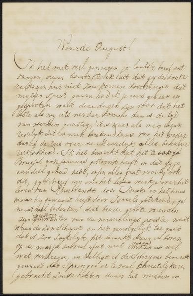 Editor: This is "Deel van een artikel over Hongarije gekopieerd uit de 'Quarterly Review'" by Johannes Tavenraat, made between 1862 and 1864. It seems to be a handwritten page from a review, done in ink on paper, possibly laid over textile. It feels almost like I’m looking at a personal journal entry, yet it’s a copied article. What do you see in this piece? Curator: I see a complex interplay between the personal and the political, and between copying and authorship. Consider the socio-political context of mid-19th century Hungary – a nation grappling with identity, caught between empires, with revolutionary sentiments brewing. The act of copying an article, specifically about Hungary, suggests an active engagement with contemporary debates and potentially resistance to dominant narratives. Why this particular article, at this particular moment? Editor: That's interesting. I was just seeing it as transcription, but the choice of article makes it deliberate. So, you're saying this seemingly simple act is imbued with political significance? Curator: Exactly. The use of pen and ink, traditionally tools for official documentation, adds another layer. Is this a subversive act, to copy by hand something meant for wider circulation through print? Or is it a form of personal scholarship, internalizing information relevant to a specific political cause? Editor: So, instead of seeing it as just text, we have to think about who wrote it, why, and how it connects to the broader struggle for Hungarian identity and autonomy. Curator: Precisely. Even the textile possibly underneath might connect with questions about material conditions related to artistic production in this historical and geographic moment. What do you make of the relationship of line to legibility, the struggle in deciphering the word from the mark of the pen itself? Editor: It becomes much more than just a historical document. It shows how information, even copied, could be a form of quiet activism and a tool for shaping personal and perhaps even national identity. Curator: Absolutely. It challenges us to reconsider what constitutes art and activism and the various strategies people employ to assert their voices.