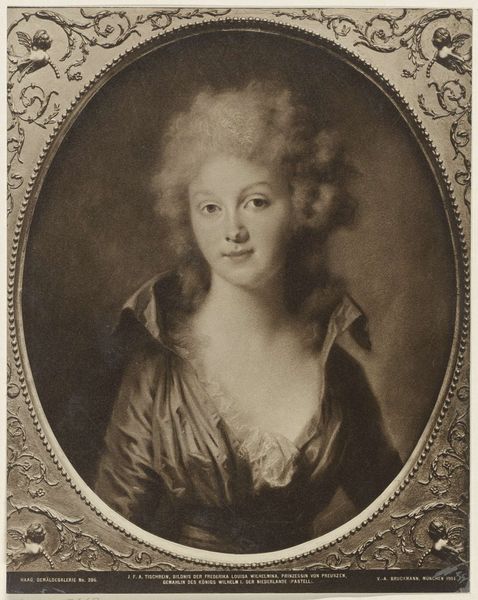 Editor: So this is "Portrait of Wilhelmina of Prussia," made between 1790 and 1819 by Benjamin Samuel Bolomey. It's an engraving, a miniature. The composition is pretty traditional; she’s framed in an oval. How do you interpret this work, particularly considering the historical context of portraiture? Curator: This portrait encapsulates a very specific social power dynamic. Wilhelmina wasn't just a woman; she was a Prussian Princess, whose image was strategically circulated through engravings like this. These miniatures, were instrumental in constructing and maintaining power, reinforcing notions of nobility and feminine ideals within the confines of an unequal social structure. Think about the message this sends, about who is worthy of representation and admiration. Editor: That's interesting. I hadn’t thought about it in terms of power. It feels…almost sentimental at first glance. How does the Neoclassical style play into that? Curator: Neoclassicism, with its emphasis on order and virtue, here serves to legitimize the aristocracy. The portrait flattens Wilhelmina into an emblem of monarchy rather than presenting her as a person. The control extends even to how femininity is presented—managed, contained within acceptable boundaries. Do you see any sense of a challenge to these conventions? Editor: Not really, she seems pretty demure. It's hard to see any subversive intention, if it's there at all. Curator: Exactly! And that’s key. The absence of challenge, the embrace of idealized representation, speaks volumes about the role of women like Wilhelmina and how their images were deployed to reinforce conservative values during a period of significant political and social upheaval. It wasn't just about art; it was about maintaining the status quo. Editor: Wow, that completely shifts how I see the engraving. I guess what seems like a simple portrait is a loaded representation. Curator: Indeed. By understanding the social forces at play and seeing Wilhelmina's portrait as a political act, we move beyond sentimentality into a critical analysis of art's role in power structures. It shows the significance of analysing art within the socio-political frame that produced it.