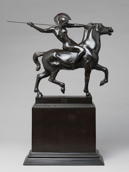 This bronze sculpture by Franz von Stuck depicts an Amazon warrior poised on horseback, spear in hand, ready for battle. The figure of the Amazon, derived from ancient Greek mythology, embodies strength, courage, and independence, challenging traditional gender roles and societal norms. The motif of the armed female warrior transcends time, echoing through history and reappearing in various cultures. Think of the Roman depictions of the goddess Diana, a huntress, or Joan of Arc leading French troops into battle. The gesture of the raised spear can be traced back to the classical world, often symbolizing power, authority, and readiness for action. Like the image of a snake, this spear motif appears across different eras and cultures with varying connotations – sometimes representing aggression, other times, protection. What does it mean that it is in the hands of a woman? This reflects a collective memory, a deep-seated cultural fascination with female empowerment and the subversion of patriarchal norms. Ultimately, this sculpture captures the enduring allure of the Amazon figure, reflecting our ongoing struggle with the ideas of strength, power, gender, and identity.