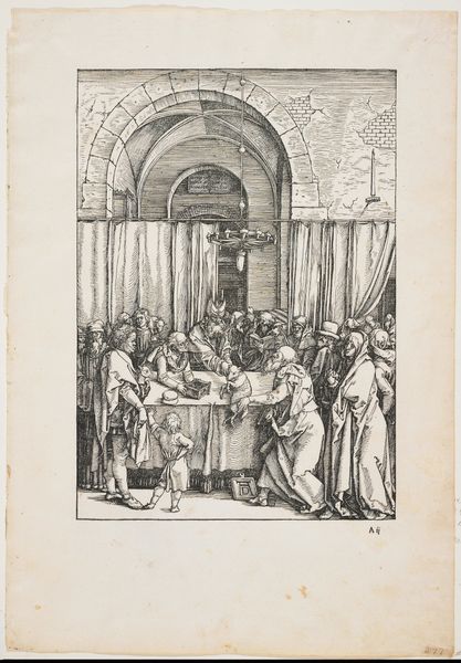 Editor: We’re looking at "Gezelschap in een interieur" by Nicolaas van der Worm, dating sometime between 1772 and 1828. It's a pen sketch of a family scene indoors. It feels incredibly intimate and gives the impression of glimpsing into the past. What stands out to you most about this piece? Curator: Immediately, I notice the prominence of communal life. The figures cluster together, not just physically but also through implied social connections. This echoes a cultural emphasis on community bonds and familial structures prevalent in the era. Consider, also, the objects in the room – the birdcage, the plates. Editor: They're very domestic, everyday items. Is that significant? Curator: Absolutely. They ground the image in the everyday experience, offering a symbolic connection to home, security, and established societal norms. Note the lighting. The sketch plays with light and shadow, creating areas of focus that draw our eye to specific groupings within the composition. How do you think this contrast impacts our reading of the work? Editor: I guess it adds to the drama in a subtle way. I mean, it’s not a dramatic scene, but it does feel like a specific moment being highlighted. Curator: Precisely. It pulls us into the narrative and makes us consider the emotional weight each figure might carry. The sketch appears like a frozen moment, yet teeming with untold stories of everyday people expressing themselves within an accepted visual language. Editor: I hadn't thought about it like that – the unspoken stories they tell. I see so much more in this now, understanding how the symbolism reflects their life and culture. Thanks for sharing your insight! Curator: My pleasure. Art like this teaches us about who we once were. Hopefully this glimpse offers some small clues and invites reflection about where we might be heading as a civilization.