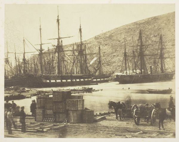 Editor: Here we have a photograph entitled "Schip in een baai," or "Ship in a Bay," taken sometime between 1860 and 1890 by Woodbury & Page. It has this kind of dreamy, ethereal feel with the ship surrounded by calm water and lush land. What strikes you most when you look at this? Curator: I think what resonates is the tension between the picturesque scene and the undercurrents of colonial expansion embedded within it. Consider the date – the mid-to-late 19th century. This was a period of intense maritime activity driven by global trade, and often, imperial ambitions. Where do you think this bay might be located and what significance it may hold? Editor: I hadn't considered the location! It feels almost generic in its beauty. Maybe somewhere in Europe? Curator: Potentially, but let’s consider Woodbury & Page were active in the Dutch East Indies. Doesn't that knowledge immediately change the photograph's dynamic? What could have been the motivation behind creating and circulating this photograph? Editor: Well, if it's the Dutch East Indies, then the seemingly tranquil bay becomes a site of resource extraction, and possibly exploitation, by a colonial power. Curator: Exactly! The ship is no longer a simple vessel, but a tool of empire. Think of it bringing goods, administrators, or military personnel to further colonial goals. Consider also the viewpoint. Who had access to making photographs and circulate such a scene? How did it further influence the identity of both colonizer and colonized? Editor: That’s incredible. So this peaceful scene is not just aesthetically pleasing, but a document intertwined with complicated social, political, and economic forces at play. Curator: Precisely. Even in something that appears purely landscape, we can trace these intricate colonial narratives. We begin to appreciate not only the artistic merit but also the loaded context it inhabits, changing how we consider landscape as a passive witness. Editor: Thank you for highlighting those connections! I’ll definitely carry this new perspective with me moving forward.