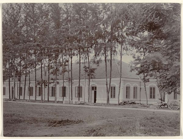 Curator: So peaceful. I could happily lose myself in that image for hours. It evokes a deep sense of nostalgia, doesn't it? Editor: It does have that quality. This is a photograph from 1897 titled, "Gezicht op twee villa's, vermoedelijk in Le Moulleau bij Arcachon." It depicts a couple of villas nestled in what seems like a tranquil countryside setting. It resides here in the Rijksmuseum’s collection. Curator: Yes! It's like a memory of a summer afternoon. The hazy sepia tones give everything a dreamlike quality. Almost like stepping into a memory, not unlike my grandparents’ house, somehow... Editor: What strikes me is the subtle interplay between nature and architecture. We see the villas, signs of human design and aspiration, almost swallowed by the surrounding forest. It prompts questions about humankind's relationship with the environment. Are we imposing, or integrated? Curator: Integrated, I hope! I see these houses as charming little beacons in a wilderness that both embraces and dwarfs them. Imagine sitting on one of those porches with a book! Also, note how the fence almost seems unnecessary—a gentle border, not a stark division. Editor: That fence speaks volumes, actually. Who is being kept in or out? Those barriers were so often implicated in exclusions based on race and class. Even in this apparently idyllic setting, it's critical to remember such divisions. It prompts thoughts on accessibility and privilege that might be invisible in such scenes. Curator: Hmmm, I hear you. But I must admit that looking at it, that’s the last thing I think about! Instead, it gives me the chance to fantasize about a quiet rebellion – trading the modern world's hustle for the calm simplicity of these villas, back when slowing down wasn't just a trendy fad, but just how things were. Editor: Perhaps there’s value in exploring how aesthetic pleasure can coexist with historical awareness. We can appreciate the image’s beauty while staying vigilant about its historical context and potential silences. This image can evoke discussions of leisure and luxury from the late 19th century and also invites considerations of who benefits from these visual paradises. Curator: Ultimately, isn't art about connection? To beauty, to history, to our own memories, hopes, and, yes, even discontents? Even a picture as simple as this one provides all those doorways to explore and, maybe, to change how we look at things. Editor: Yes, it truly highlights how images, seemingly simple, hold multiple layers. It is this kind of ongoing engagement that can make viewing these pieces so illuminating and enriching.