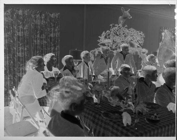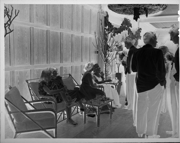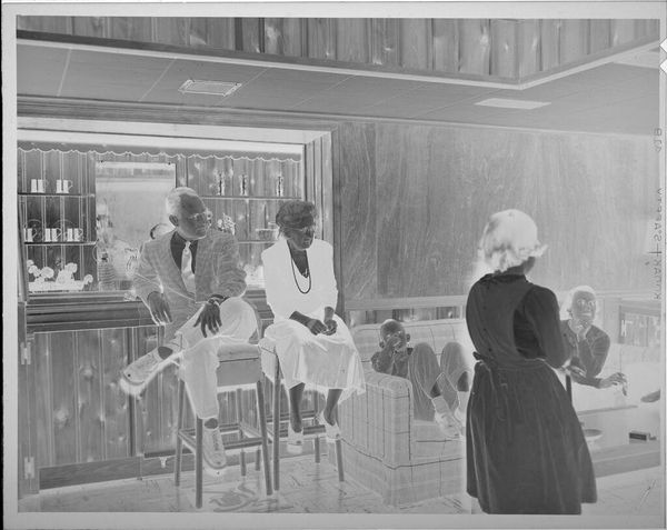 Editor: This photograph, "Untitled (woman and baby at vanity looking into mirror)" by Lucian and Mary Brown, is striking! The composition is a bit disorienting with the mirrored images. What do you make of this scene? Curator: The photograph presents a public image of domesticity. Consider the performative aspect of motherhood presented through the vanity mirror. Is this a space for reflection or for constructing an image? Editor: That's interesting. The mirror creates layers of reality, but it also feels very staged. Curator: Exactly. How does the photographic medium itself, with its capacity for documentation and manipulation, contribute to the construction of this public persona? Editor: It makes me think about the societal expectations placed on women, even in private moments. Thanks, I hadn't considered the staged aspect so explicitly. Curator: And it challenges us to think about the role photography plays in shaping those expectations.