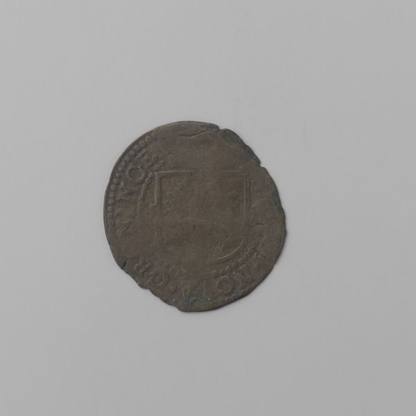 Editor: Here we have a metal coin, titled "Zeeuwse statenoord," dating from around 1580-1583. The material's aged appearance gives it a sombre, almost melancholic quality. What strikes me is the bas-relief portrait – how would you interpret its composition? Curator: The incuse portrait, while limited in its dimensional scope, speaks volumes through line and form. Note the strong profile: the deliberate arc of the nose, the set of the jaw. These choices signify power and authority. But, the circular shape and metallic composition serve to contain, to control, and to standardize this representation of power. Consider also the distribution of light and shadow across the surface. Does it contribute to a sense of depth or flatten the image? Editor: I see how the play of light does add depth, making the figure more imposing despite the coin's small size. So, the portrait and the material contrast in effect? Curator: Precisely. There's an inherent tension. The coin as a medium invites reproducibility and dissemination, whereas the individualized detail of the portrait hints at a unique identity, even an elevation of the figure above the common masses. Note too the wear and tear – the imperfections disrupting the original form. What narrative does this degradation suggest? Editor: Perhaps that time erodes even the most carefully constructed images of power, or that repeated handling slowly dissolves the impression it holds? That contrast between creation and destruction is intriguing. Curator: Indeed. The object is a site of these competing visual forces and processes. Editor: That’s fascinating! Thinking about it this way really makes me see the coin as more than just currency. Curator: My thoughts exactly, as a formal construction, it goes far beyond being a mere functional object.
