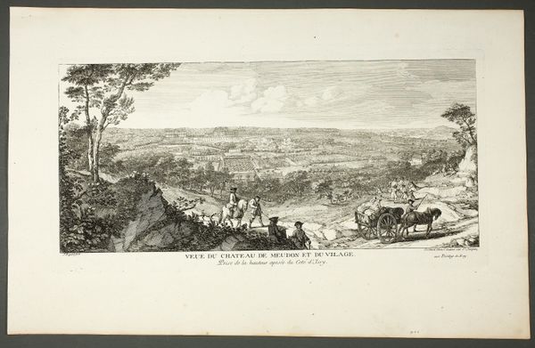 Jacques Rigaud made this print, "Landscape with a siege of a city and soldiers digging trenches," in 1733. It's an etching, a medium that allows for detailed depictions of a scene that is, on the one hand, landscape, and on the other, a military operation. This image comes from a time when the "military landscape" emerged as a distinct genre. It blends the conventions of landscape painting with the realities of warfare. But it also serves a very clear social function. It represents war as an ordered, rational activity, downplaying its brutality and chaos, reinforcing a sense of control and legitimacy. To understand this image better, we'd need to delve into military history, looking at the strategies and technologies of siege warfare in the 18th century. We'd also want to explore the print market of the time, understanding who the audience for such images was and what purposes they served in shaping public opinion about military campaigns.