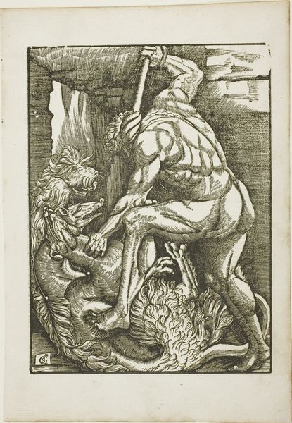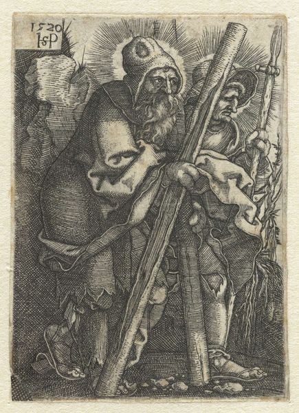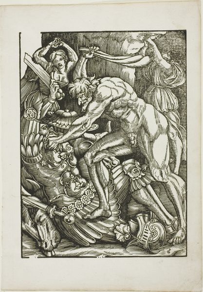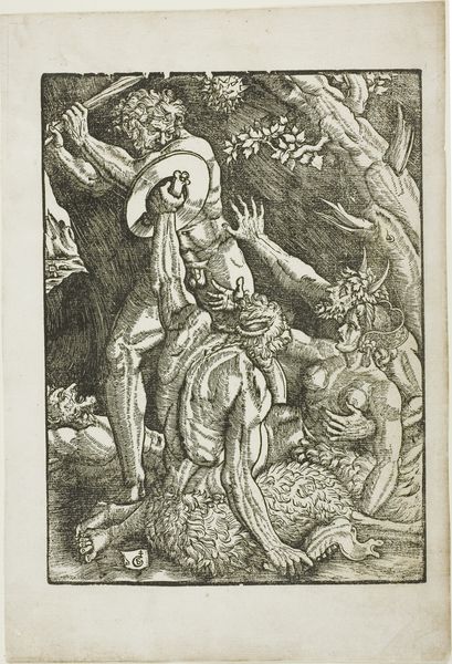 Editor: Here we have Albrecht Altdorfer’s “Dido Killing Herself,” an engraving dating back to the 1520s or 30s. There's a real sense of drama in this piece. What do you see in this work that resonates with our modern understanding of history and culture? Curator: This engraving gives us an opportunity to question the traditional narratives surrounding female agency and self-destruction. Dido, in Virgil’s "Aeneid", is often portrayed as a victim of love, driven to suicide by Aeneas’s abandonment. But let's consider this from a different perspective: what if we examine Dido's suicide not as a purely emotional response but as an act of resistance? Editor: Resistance? How so? Curator: In choosing death, Dido reclaims power in a patriarchal society. She actively denies Aeneas and Rome the chance to control her narrative. Altdorfer, through his artistry, might be subtly highlighting this. Notice her posture, her direct gaze—do you see a victim or someone asserting a final act of control? Editor: I hadn't considered that angle before. The composition, with the swirling lines around her, now feels less like despair and more like a force field of her own making. Curator: Exactly. And it is crucial to remember that suicide, while tragic, can be interpreted within different cultural and historical contexts. We have to analyze the patriarchal structures and power dynamics at play that confined Dido and other women throughout history. We need to ask: what choices were truly available to her? What would a feminist reading of this engraving tell us about early modern perspectives on female autonomy? Editor: This has definitely broadened my view. I was focusing on the surface story of heartbreak, but now I see the potential for deeper discussions about female agency and resistance. Curator: That's the power of art, isn't it? To provoke questions and challenge our assumptions about history, gender, and power.